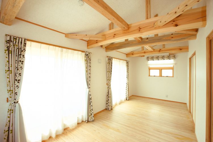 施工事例:大断面の無垢の梁で構成された空間のある家