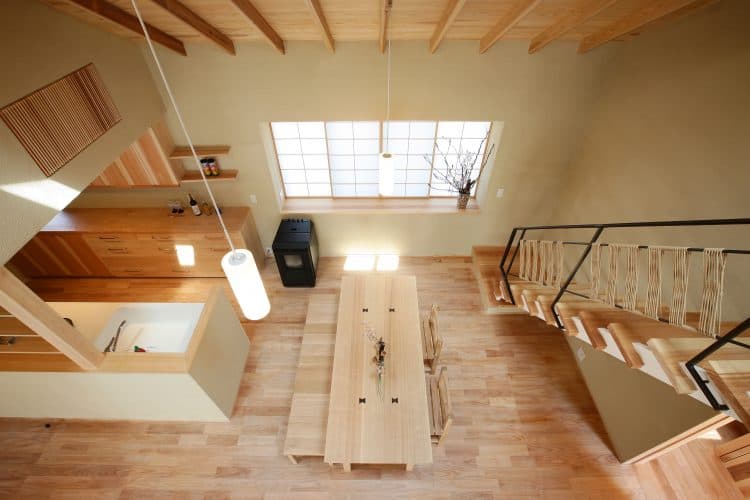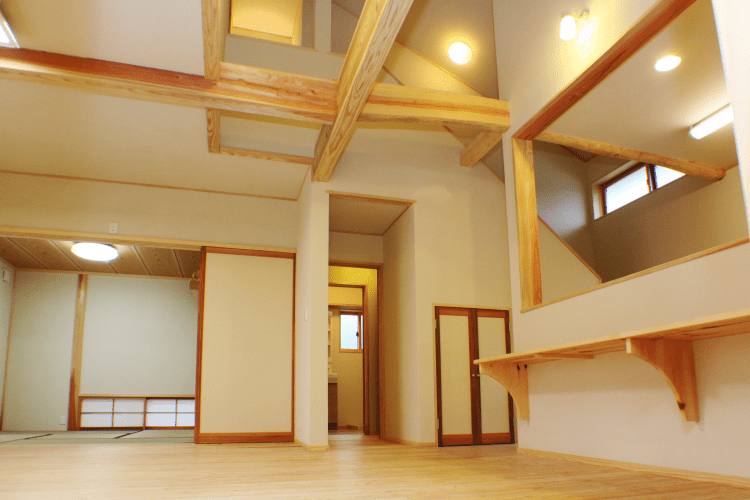 施工事例:大断面の無垢の梁で構成された空間のある家