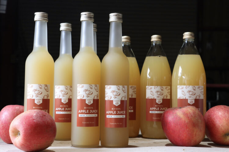 吾妻山のふもと、自然豊かな庭坂の地で、梨・りんご・キウイを栽培しています。太陽の光とと澄んだ空気の中で育った果実は、ひとつひとつ味わい深く、季節の恵みがぎゅっと詰まっています。今回は、甘さと酸味のバランスが良いサンふじりんごの果汁だけを搾った、こだわりのりんごジュースをご用意しました。素材そのものの美味しさをそのまま感じていただける一杯を、ぜひお楽しみください。